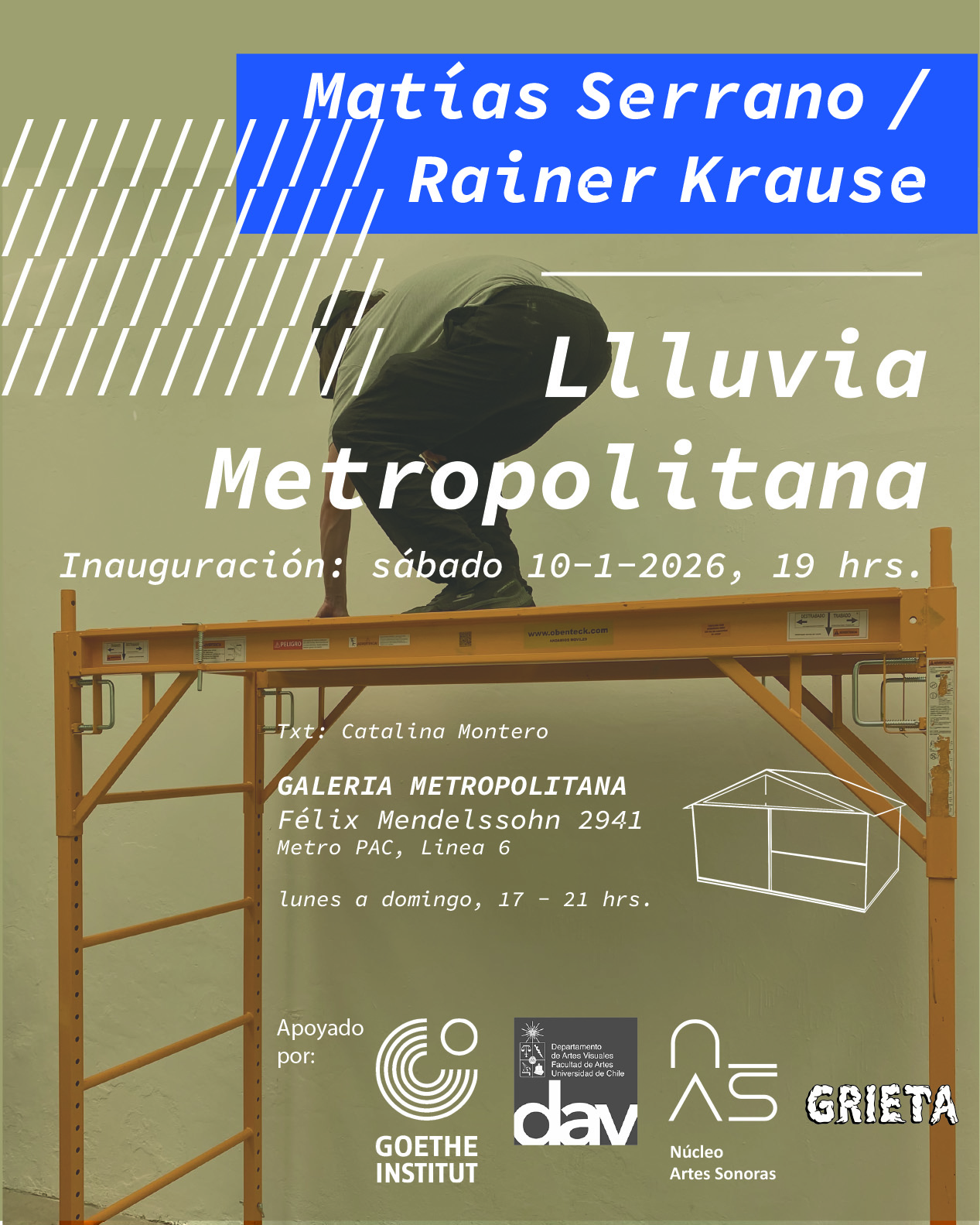 Proyecto de exposición de sitio y tiempo específico junto a Rainer Krause en Galería Metropolitana, del 10 al 30 de enero de 2026. Santiago, Chile.
