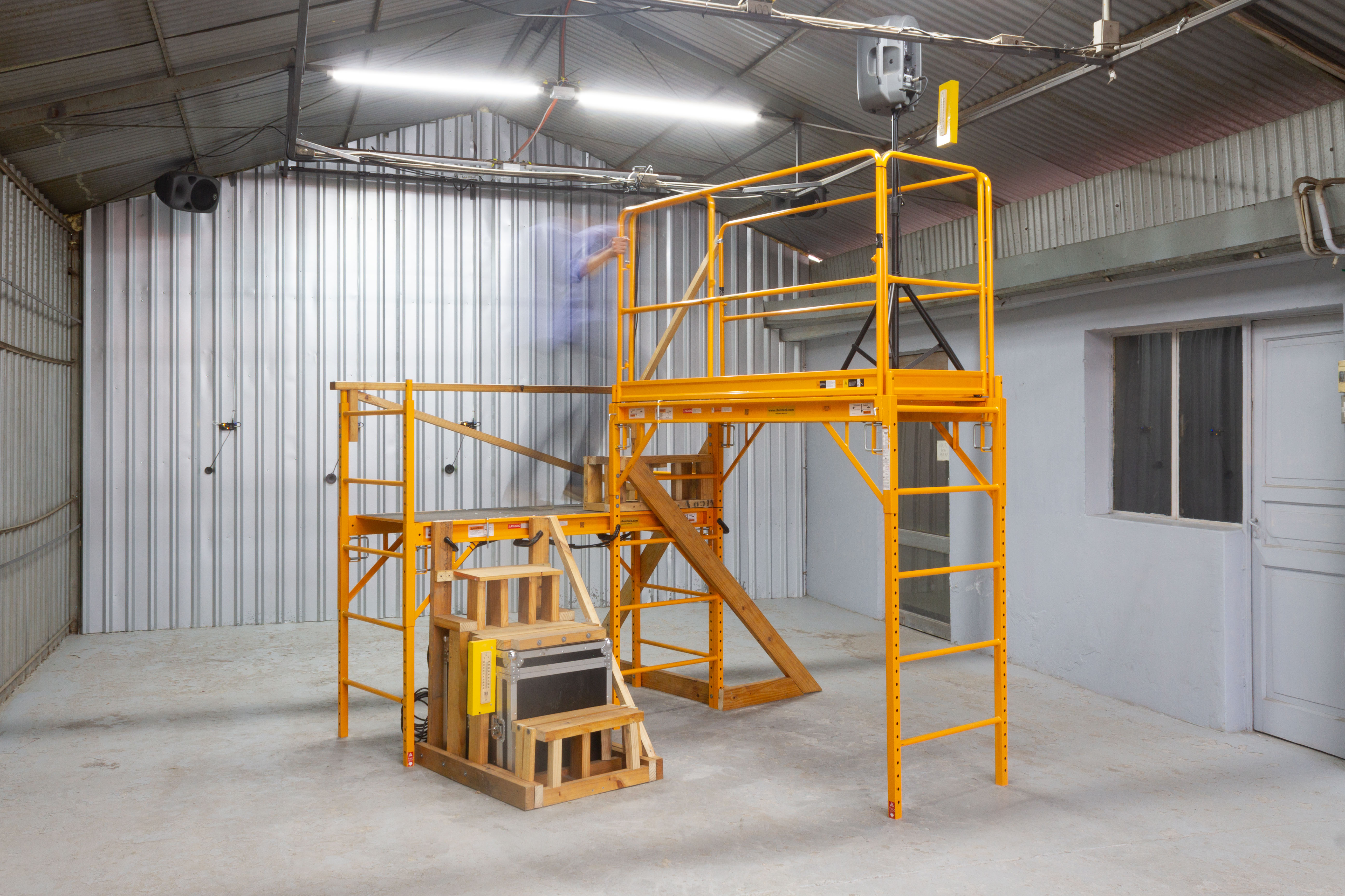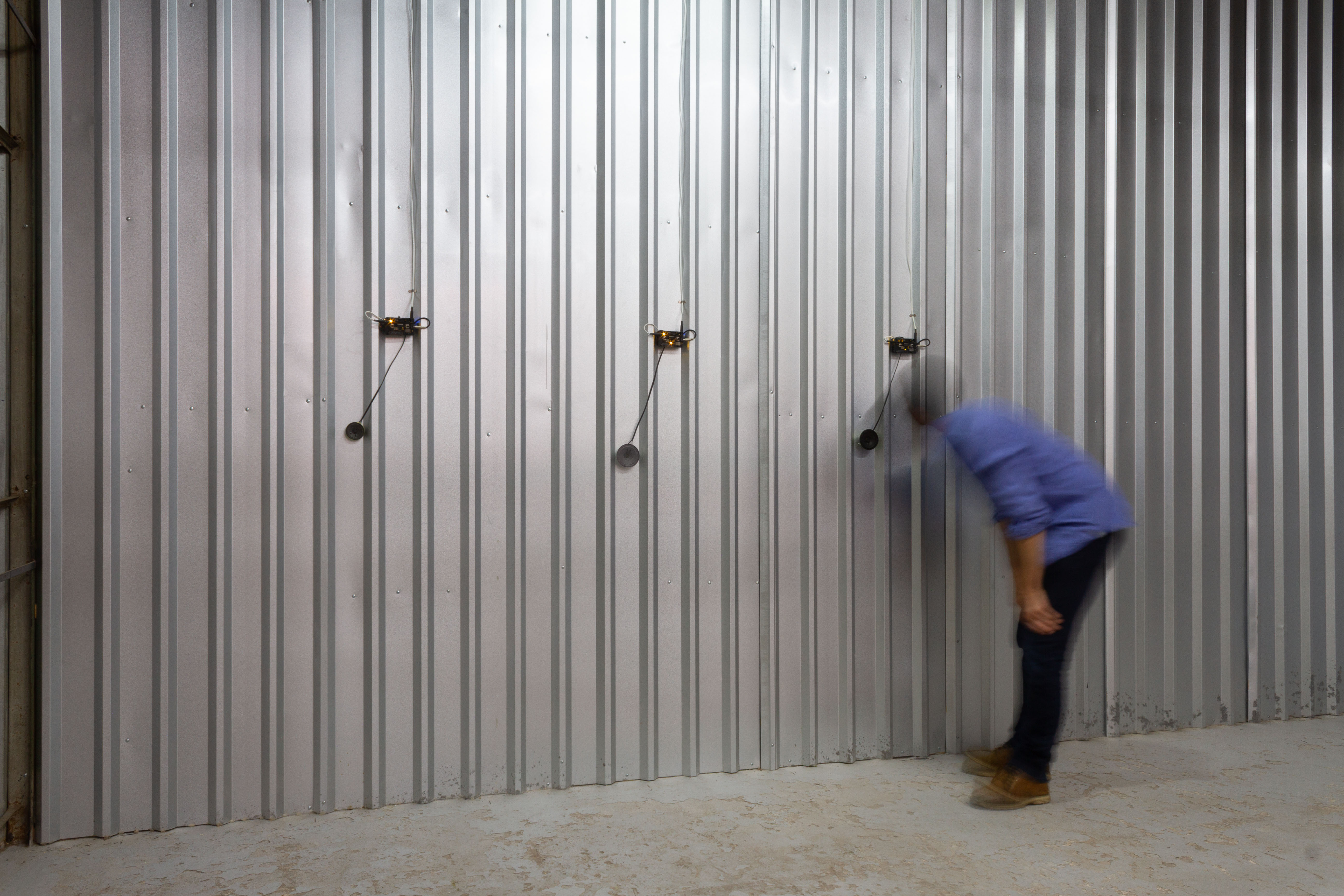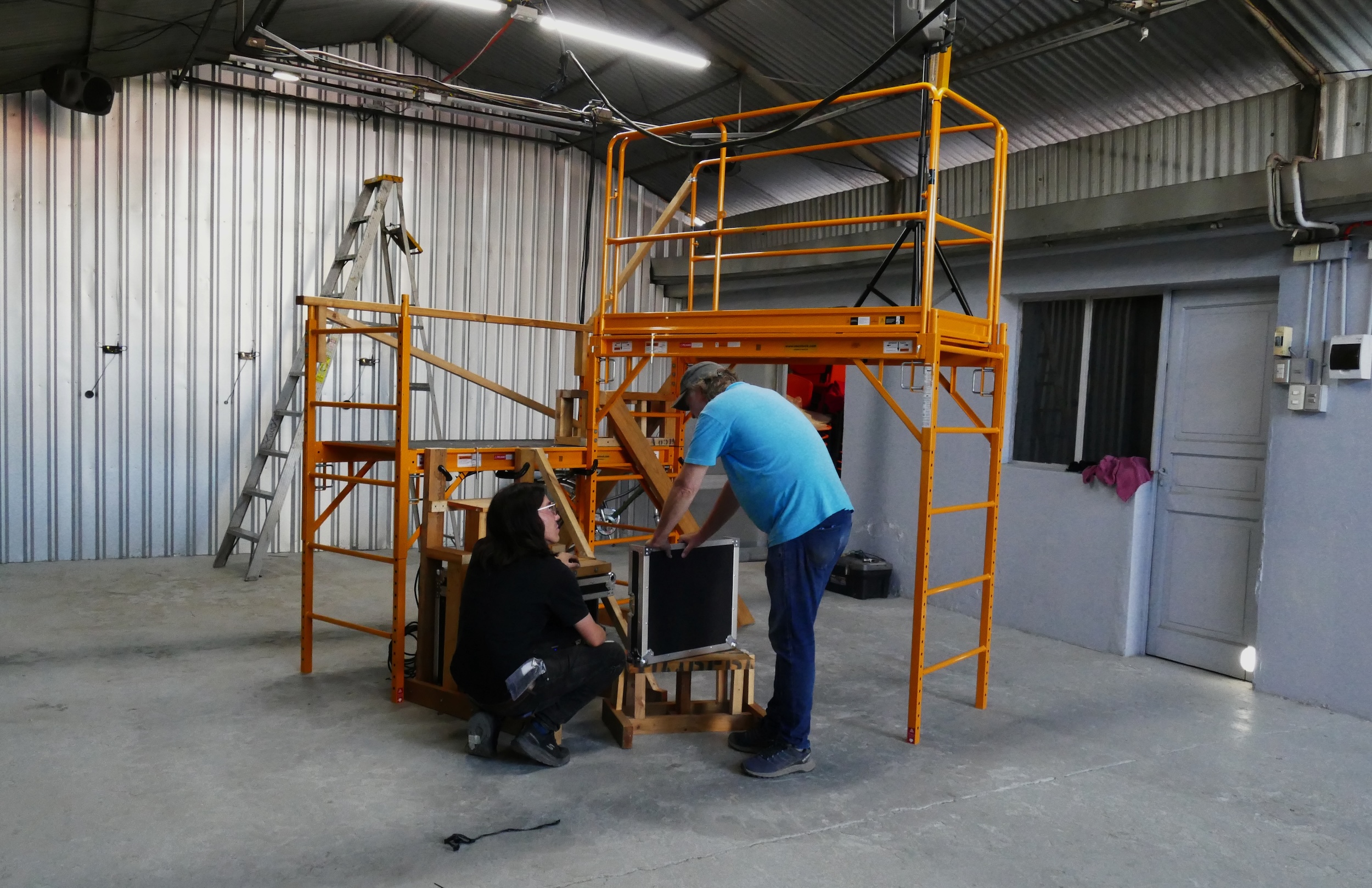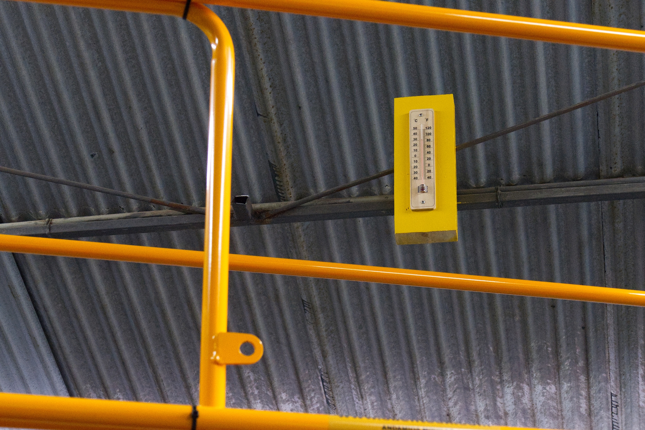 Una de las características de este tipo de arquitectura es que el calor aumenta a medida que uno se acerca al techo, por lo que eso gatilló la idea de instalar un andamio que permitiera acercarse a la parte alta de la galería, donde se encuentra un parlante con un sonido detallado de gotas, y de un termómetro que indica la temperatura actual en ese punto. Esa temperatura puede ser comparada con lo que indica otro termómetro, instalado en la base del andamio, donde además se encuentra el equipamiento de reproducción y amplificación escondido en una caja. Alrededor de ésta, y de todo el andamio, se realizaron intervenciones con madera recuperada, cumpliendo varias funciones: dar rigidez a la estructura, conformar escalones para facilitar el ejercicio de subida, y contrapesar estéticamente lo industrial con lo hechizo.